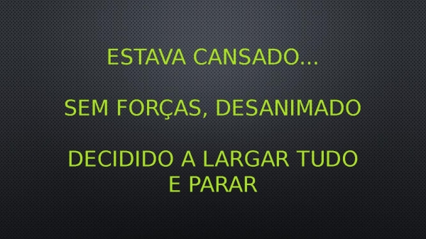 - Estava cansado...Sem forças, desanimadodecidido a largar tudoe parar