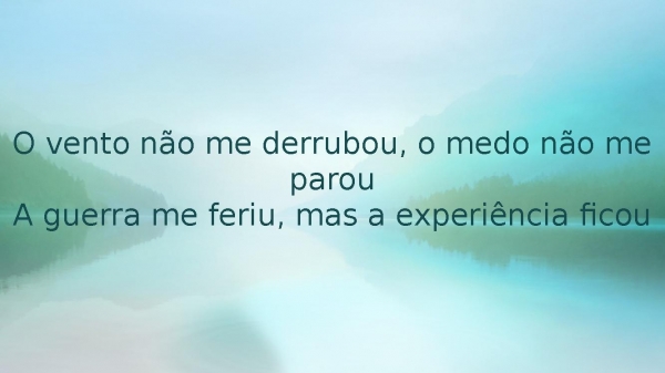 - O vento não me derrubou, o medo não me parouA guerra me feriu, mas a experiência ficou