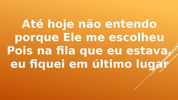 - Até hoje não entendo porque Ele me escolheuPois na fila que eu estava, eu fiquei em último lugar