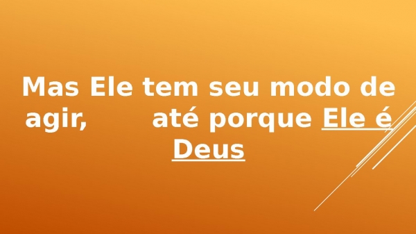 - Mas Ele tem seu modo de agir, até porque Ele é Deus