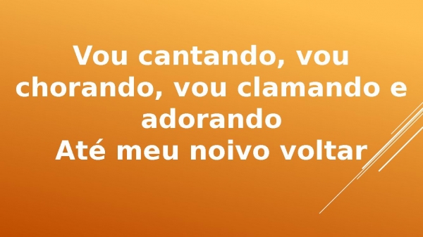 - Vou cantando, vou chorando, vou clamando e adorandoAté meu noivo voltar