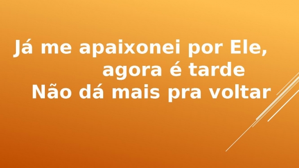 - Já me apaixonei por Ele, agora é tardeNão dá mais pra voltar