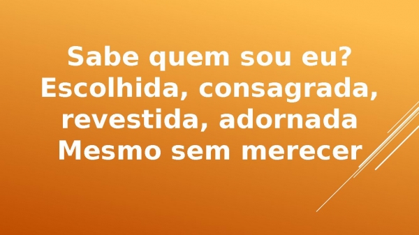 - Sabe quem sou eu?Escolhida, consagrada, revestida, adornadaMesmo sem merecer