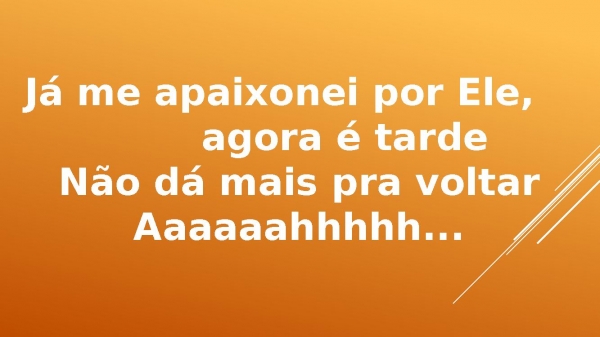 - Já me apaixonei por Ele, agora é tardeNão dá mais pra voltarAaaaaahhhhh...