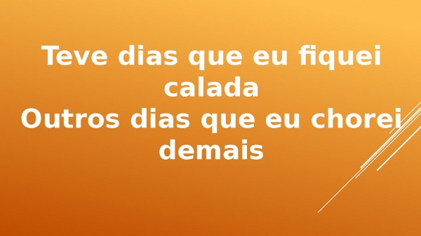 - Teve dias que eu fiquei caladaOutros dias que eu chorei demais