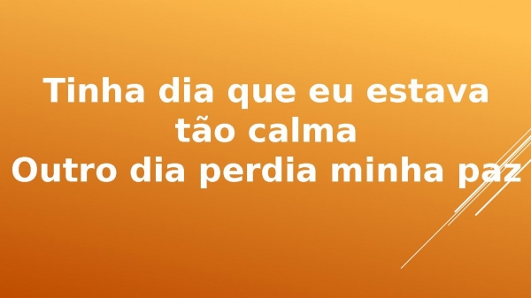 - Tinha dia que eu estava tão calmaOutro dia perdia minha paz