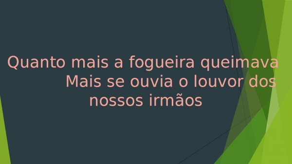 - Quanto mais a fogueira queimava, Mais se ouvia o louvor dos nossos irmãos