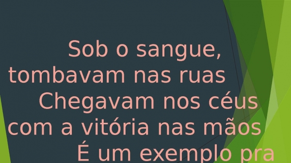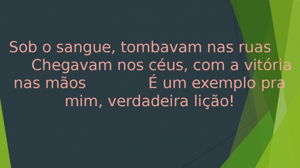 - Sob o sangue, tombavam nas ruas Chegavam nos céus, com a vitória nas mãos É um exemplo pra mim, verdadeira lição!