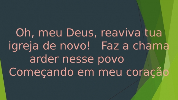 - Oh, meu Deus, reaviva tua igreja de novo! Faz a chama arder nesse povo Começando em meu coração