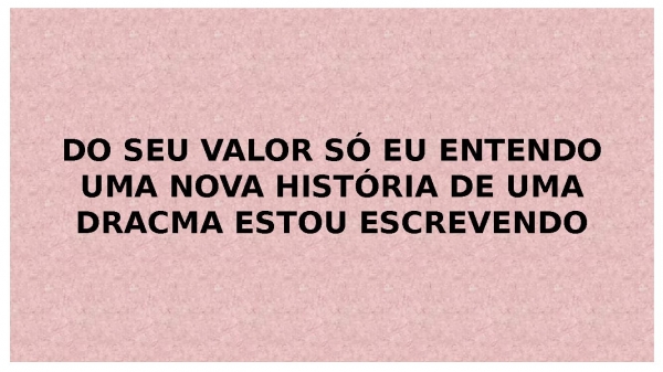 - DO SEU VALOR SÓ EU ENTENDOUMA NOVA HISTÓRIA DE UMA DRACMA ESTOU ESCREVENDO