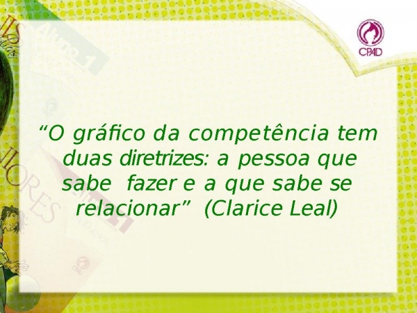 - “O gráfico da competência tem duas diretrizes: a pessoa que sabe fazer e a que sabe se relacionar” (Clarice Leal)