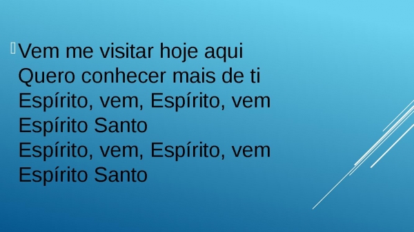 - Vem me visitar hoje aquiQuero conhecer mais de tiEspírito, vem, Espírito, vemEspírito SantoEspírito, vem, Espírito, vemEspírito Santo