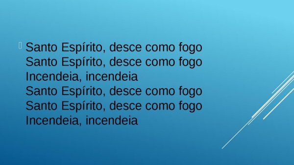 - Santo Espírito, desce como fogoSanto Espírito, desce como fogoIncendeia, incendeiaSanto Espírito, desce como fogoSanto Espírito, desce como fogoIncendeia, incendeiaIncendeia, incendeia