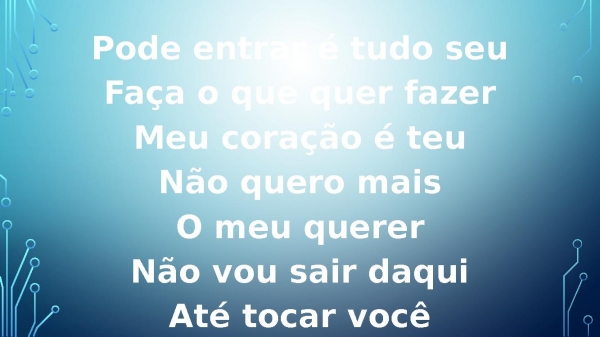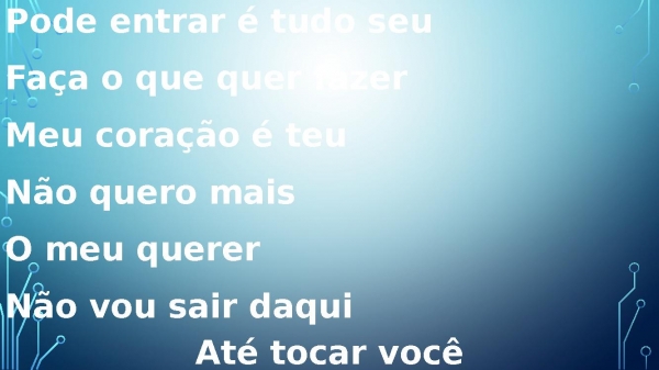 - Pode entrar é tudo seu Faça o que quer fazer Meu coração é teu Não quero mais O meu querer Não vou sair daqui Até tocar você