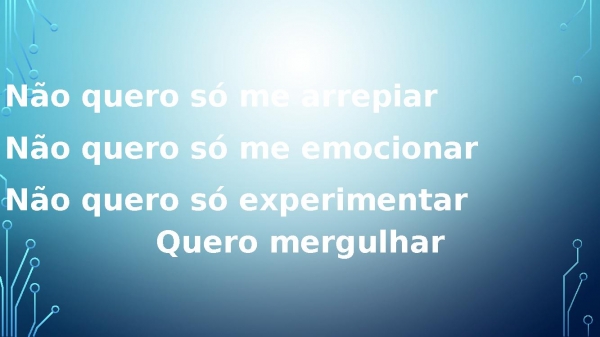 - Não quero só me arrepiar Não quero só me emocionar Não quero só experimentar Quero mergulhar2x