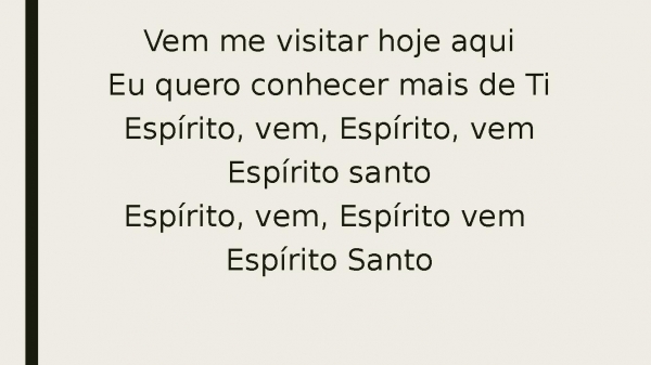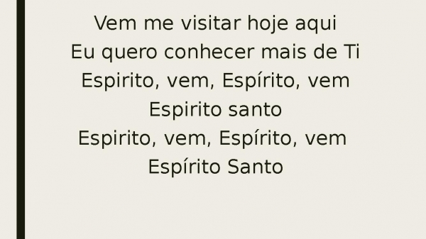 - Vem me visitar hoje aquiEu quero conhecer mais de TiEspírito, vem, Espírito, vemEspírito santoEspírito, vem, Espírito vem Espírito Santo
