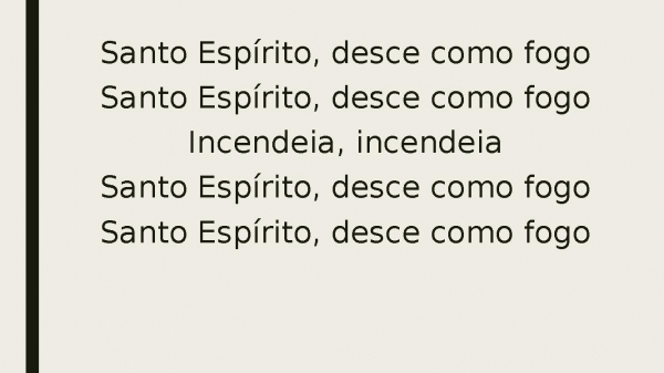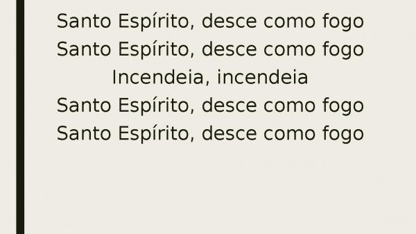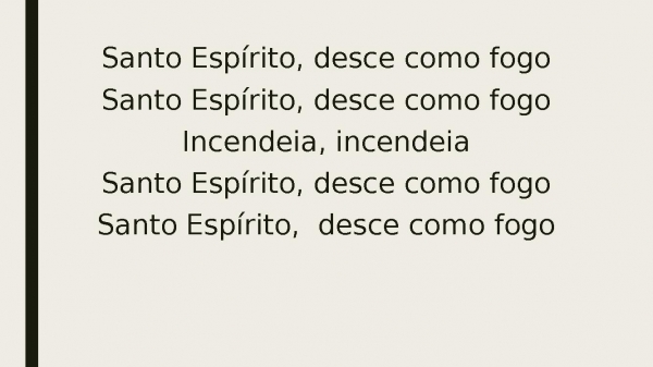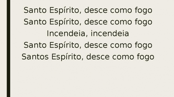 - Santo Espírito, desce como fogoSanto Espírito, desce como fogoIncendeia, incendeiaSanto Espírito, desce como fogoSanto Espírito, desce como fogo