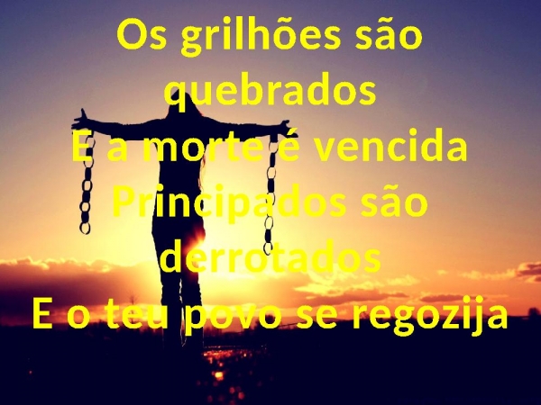 - Os grilhões são quebradosE a morte é vencidaPrincipados são derrotadosE o teu povo se regozija