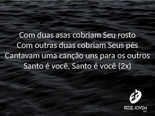 - Com duas asas cobriam Seu rostoCom outras duas cobriam Seus pésCantavam uma canção uns para os outrosSanto é você, Santo é você (2x)