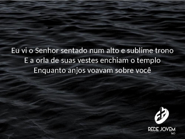 - Eu vi o Senhor sentado num alto e sublime tronoE a orla de suas vestes enchiam o temploEnquanto anjos voavam sobre você