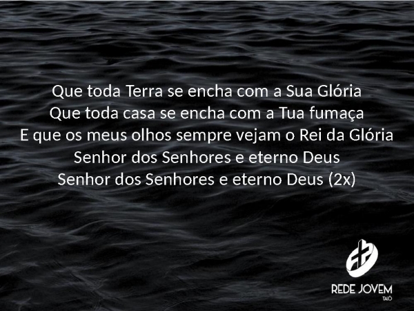 - Que toda Terra se encha com a Sua GlóriaQue toda casa se encha com a Tua fumaçaE que os meus olhos sempre vejam o Rei da GlóriaSenhor dos Senhores e eterno DeusSenhor dos Senhores e eterno Deus (2x)