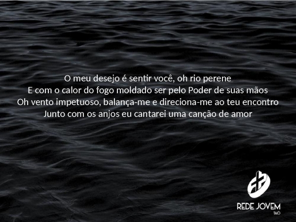 - O meu desejo é sentir você, oh rio pereneE com o calor do fogo moldado ser pelo Poder de suas mãosOh vento impetuoso, balança-me e direciona-me ao teu encontroJunto com os anjos eu cantarei uma canção de amor