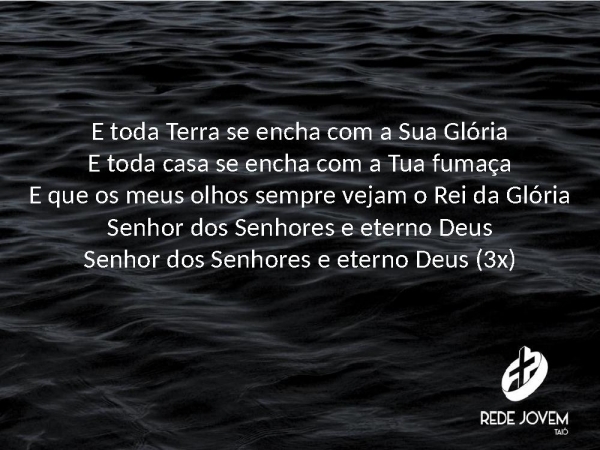 - E toda Terra se encha com a Sua GlóriaE toda casa se encha com a Tua fumaçaE que os meus olhos sempre vejam o Rei da GlóriaSenhor dos Senhores e eterno DeusSenhor dos Senhores e eterno Deus (3x)