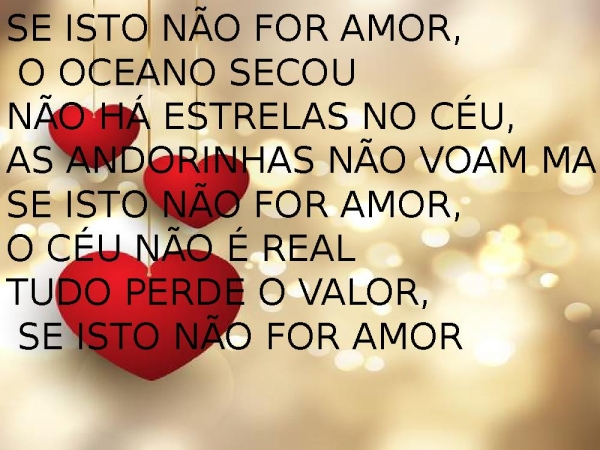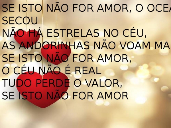 - SE ISTO NÃO FOR AMOR, O OCEANO SECOUNÃO HÁ ESTRELAS NO CÉU, AS ANDORINHAS NÃO VOAM MAISSE ISTO NÃO FOR AMOR, O CÉU NÃO É REALTUDO PERDE O VALOR, SE ISTO NÃO FOR AMOR