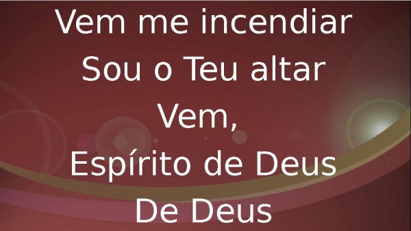 - Vem me incendiarSou o Teu altarVem, Espírito de DeusDe Deus