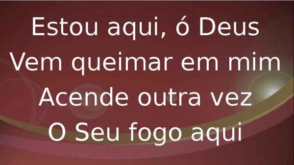 - Estou aqui, ó DeusVem queimar em mimAcende outra vezO Seu fogo aqui