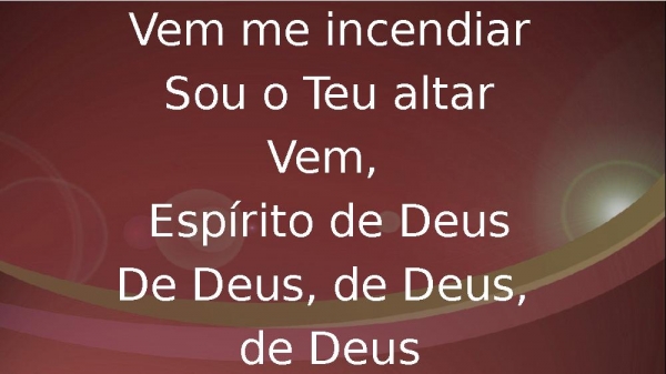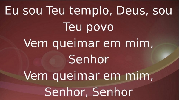 - Eu sou Teu templo, Deus, sou Teu povoVem queimar em mim, SenhorVem queimar em mim, Senhor, Senhor