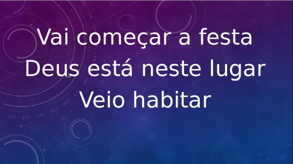 - Vai começar a festaDeus está neste lugarVeio habitar