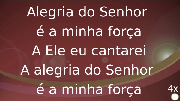 - Alegria do Senhor é a minha forçaA Ele eu cantareiA alegria do Senhor é a minha força4x