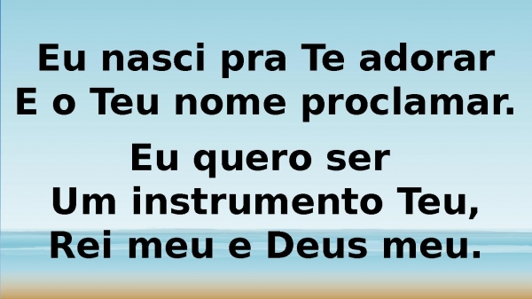 - Eu nasci pra Te adorarE o Teu nome proclamar.Eu quero ser Um instrumento Teu,Rei meu e Deus meu.