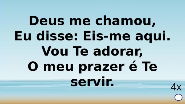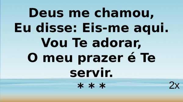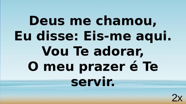 - Deus me chamou,Eu disse: Eis-me aqui.Vou Te adorar,O meu prazer é Te servir.4x