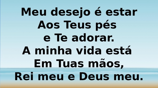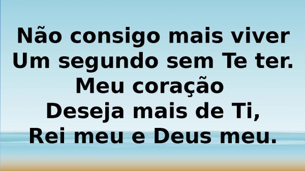 - Não consigo mais viverUm segundo sem Te ter.Meu coração Deseja mais de Ti,Rei meu e Deus meu.