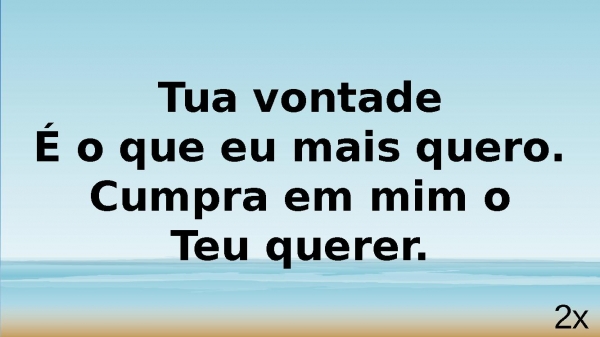 - Tua vontadeÉ o que eu mais quero.Cumpra em mim oTeu querer.2x