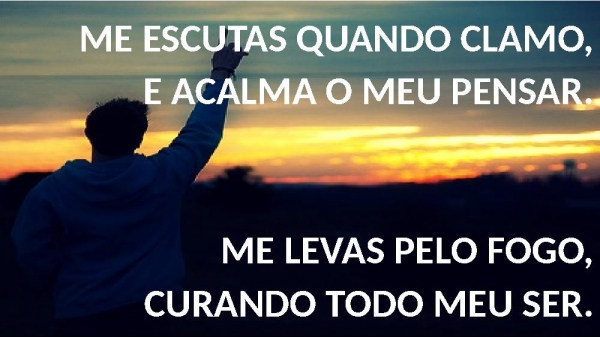 - ME ESCUTAS QUANDO CLAMO, E ACALMA O MEU PENSAR.ME LEVAS PELO FOGO,CURANDO TODO MEU SER.