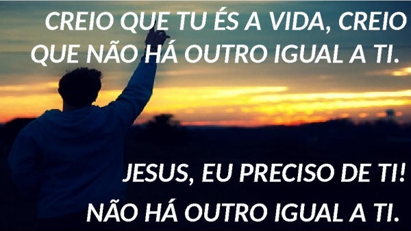 - CREIO QUE TU ÉS A VIDA, CREIO QUE NÃO HÁ OUTRO IGUAL A TI. JESUS, EU PRECISO DE TI!NÃO HÁ OUTRO IGUAL A TI.