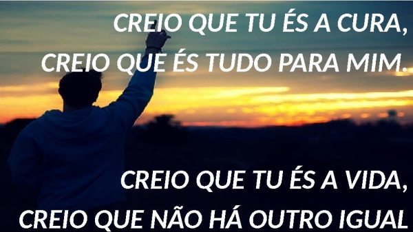 - CREIO QUE TU ÉS A CURA,CREIO QUE ÉS TUDO PARA MIM.CREIO QUE TU ÉS A VIDA,CREIO QUE NÃO HÁ OUTRO IGUAL A TI. JESUS, EU PRECISO DE TI!