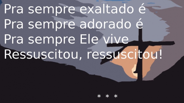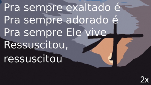 - Pra sempre exaltado éPra sempre adorado éPra sempre Ele viveRessuscitou, ressuscitou!* * *