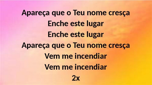 - Apareça que o Teu nome cresçaEnche este lugarEnche este lugarApareça que o Teu nome cresçaVem me incendiarVem me incendiar2x