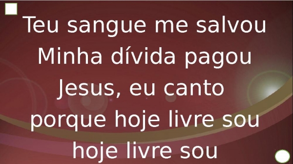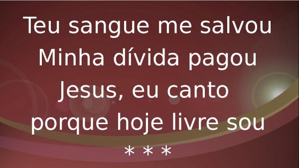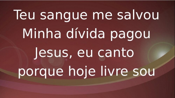 - Teu sangue me salvouMinha dívida pagouJesus, eu canto porque hoje livre sou