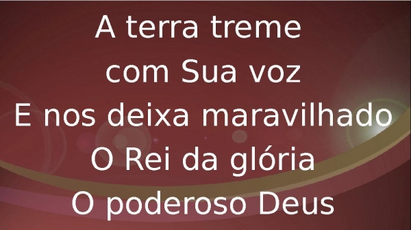- A terra treme com Sua vozE nos deixa maravilhadoO Rei da glóriaO poderoso Deus