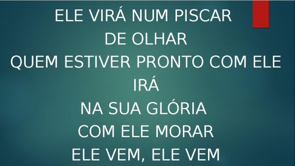 - ELE VIRÁ NUM PISCAR DE OLHARQUEM ESTIVER PRONTO COM ELE IRÁNA SUA GLÓRIA COM ELE MORARELE VEM, ELE VEM