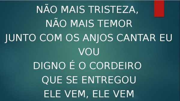 - NÃO MAIS TRISTEZA, NÃO MAIS TEMORJUNTO COM OS ANJOS CANTAR EU VOUDIGNO É O CORDEIRO QUE SE ENTREGOUELE VEM, ELE VEM