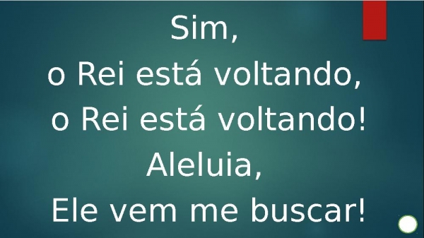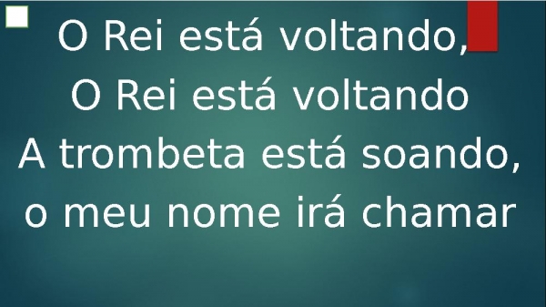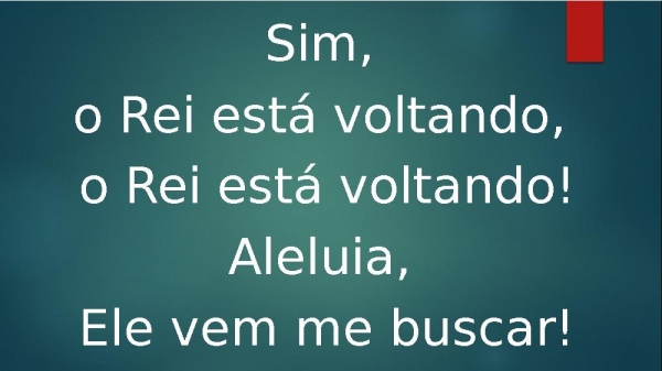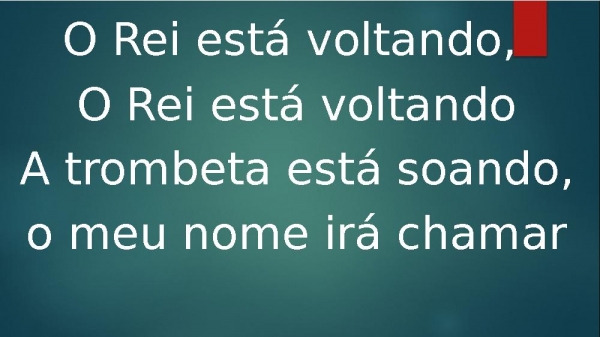 - O Rei está voltando, O Rei está voltandoA trombeta está soando, o meu nome irá chamar