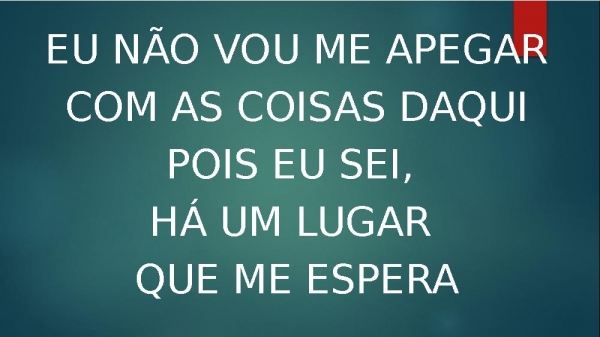 - EU NÃO VOU ME APEGAR COM AS COISAS DAQUIPOIS EU SEI, HÁ UM LUGAR QUE ME ESPERA