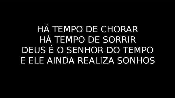 - HÁ TEMPO DE CHORARHÁ TEMPO DE SORRIRDEUS É O SENHOR DO TEMPOE ELE AINDA REALIZA SONHOS