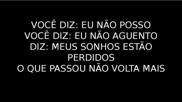 - VOCÊ DIZ: EU NÃO POSSOVOCÊ DIZ: EU NÃO AGUENTODIZ: MEUS SONHOS ESTÃO PERDIDOSO QUE PASSOU NÃO VOLTA MAIS